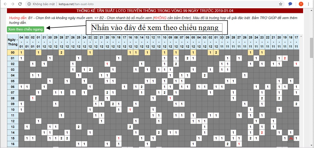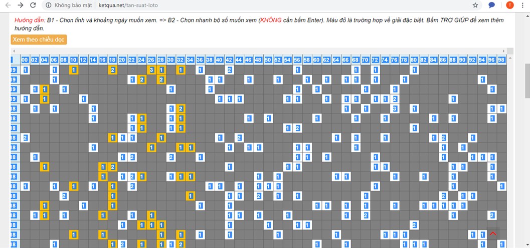 + Bạn có thể nhấn vào ô màu xanh để theo dõi theo chiều ngang các con số mà mình lựa chọn